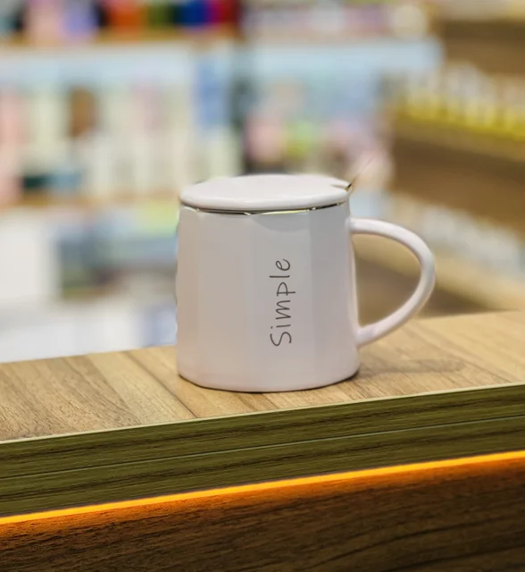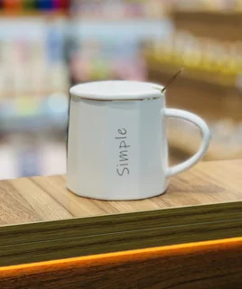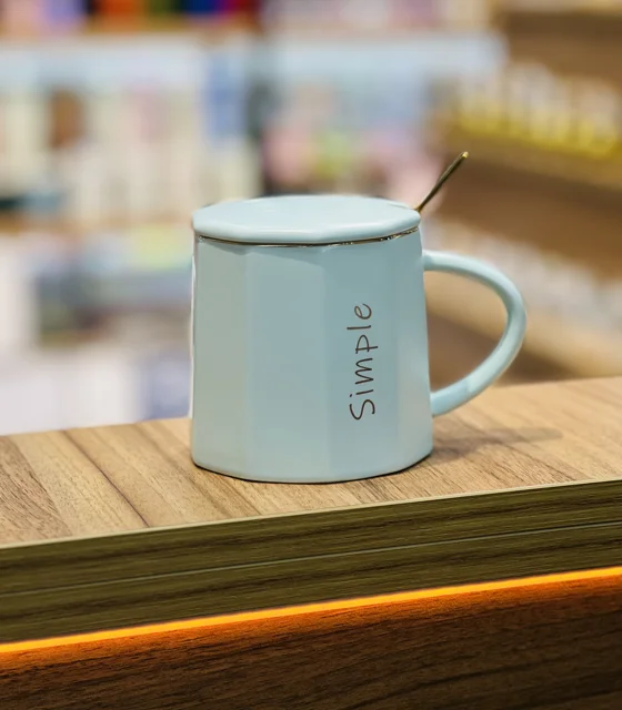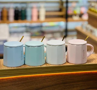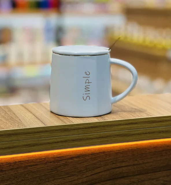 ماگ سرامیکی رنگی طرح simple ،درب دار ، قاشق دار (طلایی) مناسب برای استفاده روزمره ، قابل استفاده برای انواع نوشیدنی داغ و سرد ، وارداتی 🇨🇳 با کیفیت بالا