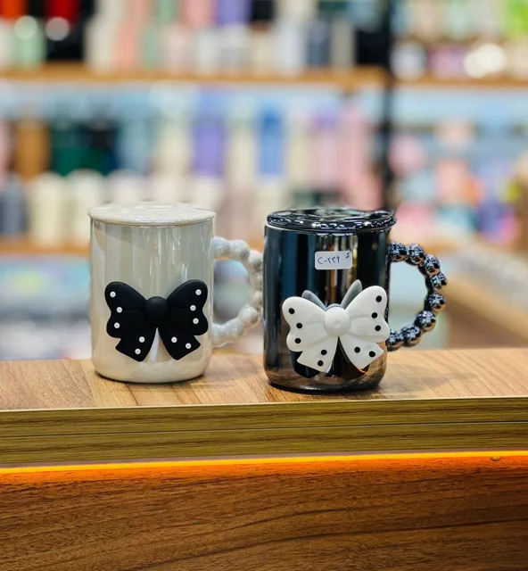 ماگ درب دار طرح پاپیون ، قاشق استیل ، سرامیکی با کیفیت بالا ، مناسب برای استفاده روزمره ، پاپیون سیلیکونی ، وارداتی 🇨🇳